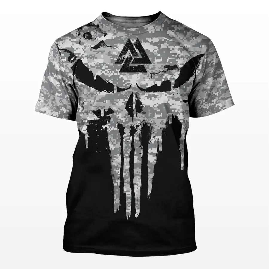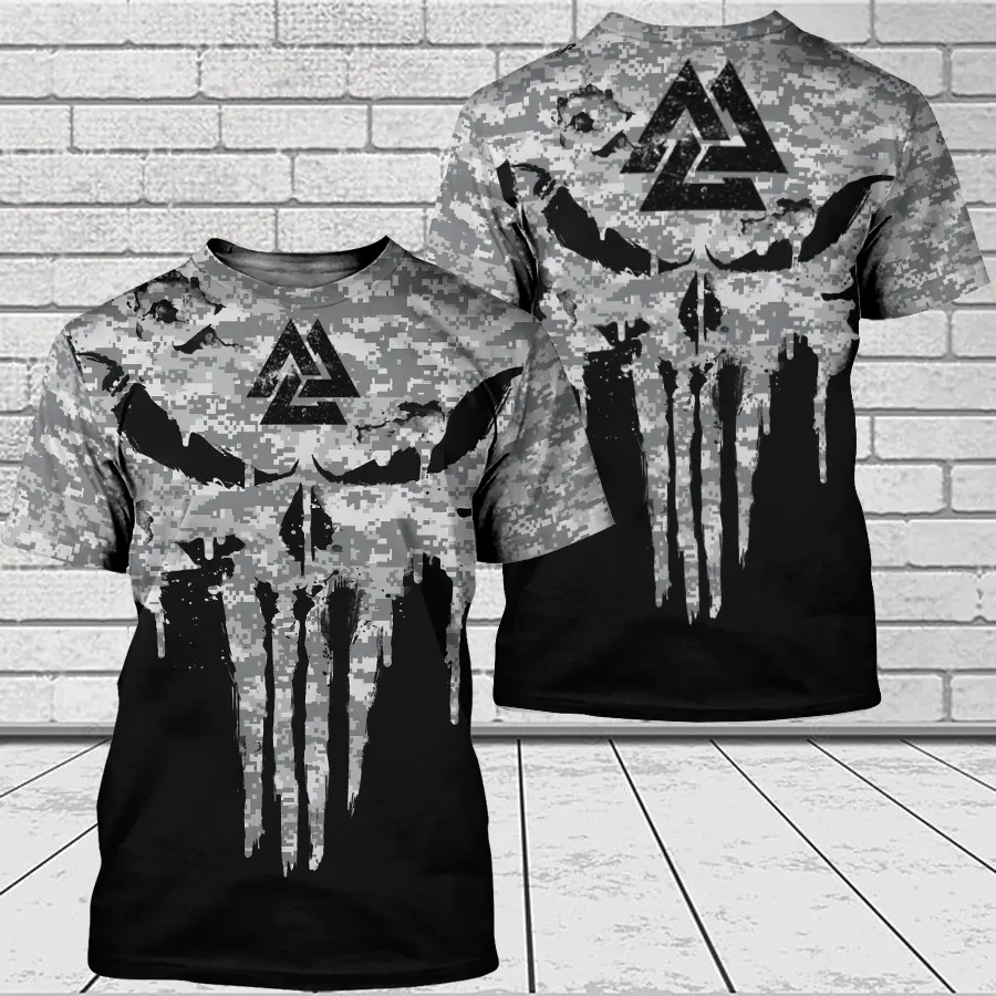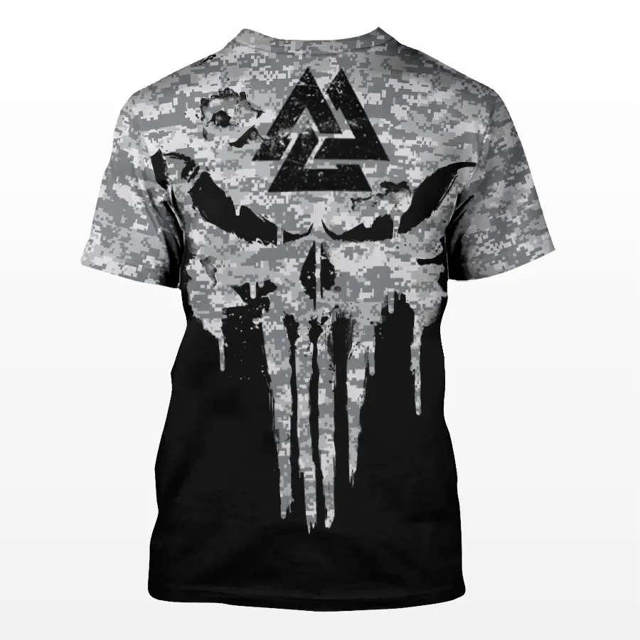 Bold Viking T Shirt – Camo Skull Art Valknut Symbol
